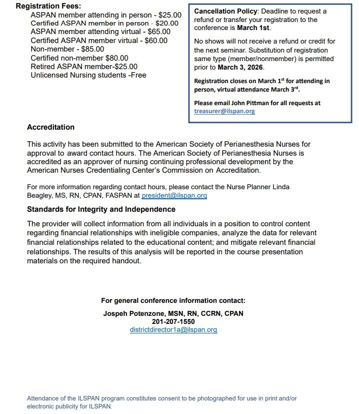 Registration is now OPEN for the March 2026 ILSPAN Conference "Recovery to Readiness: Elevating Perianesthesia Practice"